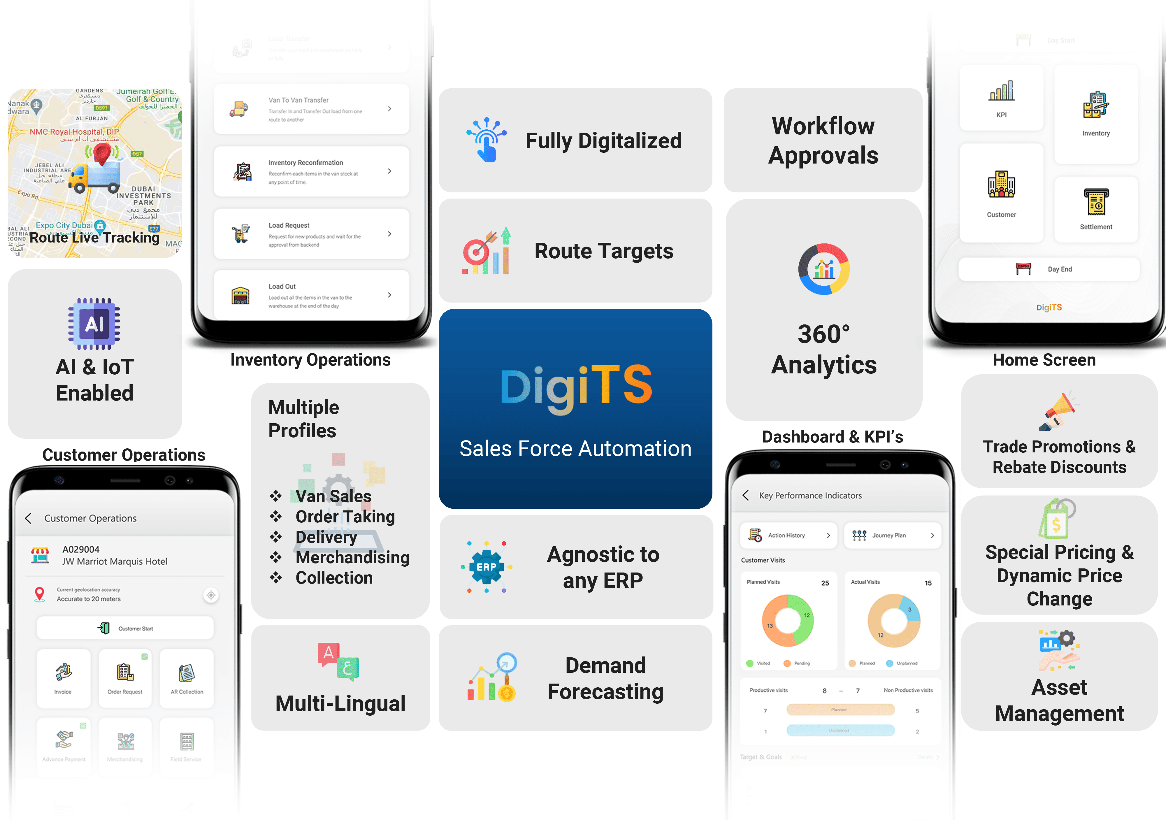 A fully digital (paperless) integrated solution for manufacturers & distributors to automate their sales and distribution process, which includes operational tasks like Invoicing, Order Taking, Delivery, Collection with Analytical Insights within a mobility enabled platform integrated to any ERP environment with improved accuracy & efficiency